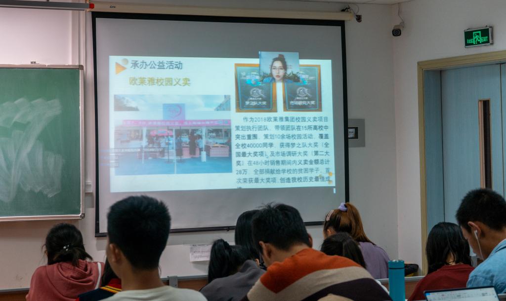 随后,刘佳桐同学在线上分享了创新创业的经验与看法。她以创办“壹点策划”工作室的个人经历为例,讲述了她的创业契机、个人创业经历,并分享了对创新创业的个人见解与经验。在演讲的问答环节,刘佳桐同学详细地回答了同学们的问题。针对生涯规划,她认为近期应以做好当前的每件事为目标,而从长期来看,应当根据自己的兴趣找到职业方向。回答“如何平衡学业与创业”的问题时,她指出应该学会抓住重点、学会取舍,同时,要合理利用时间,学会团队合作。