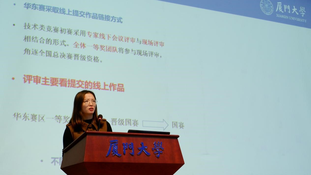 丹枫迎秋,景色宜人,为提高我院研究生学术创新能力,帮助研一新生尽快投入科研学习,高效规划研究生生活,bwin必赢于11月22日下午在翔安校区图书馆大报告厅举办“‘信息·画旗帜’2021年研究生国奖面对面分享会”。学院团委副书记黄艺明及2021级全体硕士研究生参加本次分享会。分享会由新生郑冠仪主持。
