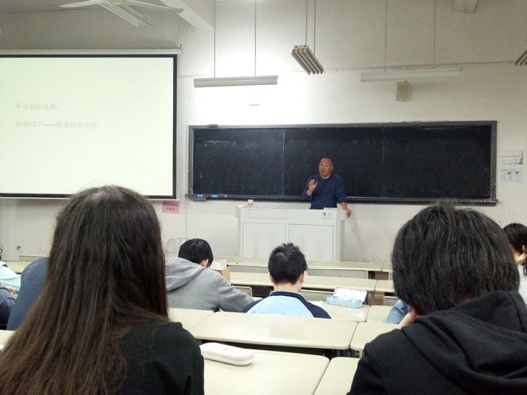 毛波老师主要从毕业班同学面临的方向选择给出了真挚建议。他提醒同学们找工作重点考虑地域和公司发展前景;继续攻读研究生选择一个好的研究方向和导师,两者相辅相成。出国尽可能的申请名校,找好导师,这对将来发展非常重要。自主创业一定要找到好的搭档和创意;当下,最重要的是顺利毕业,要保证修满学分,要顺利完成毕业论文设计,为大学四年画上一个圆满的句号。