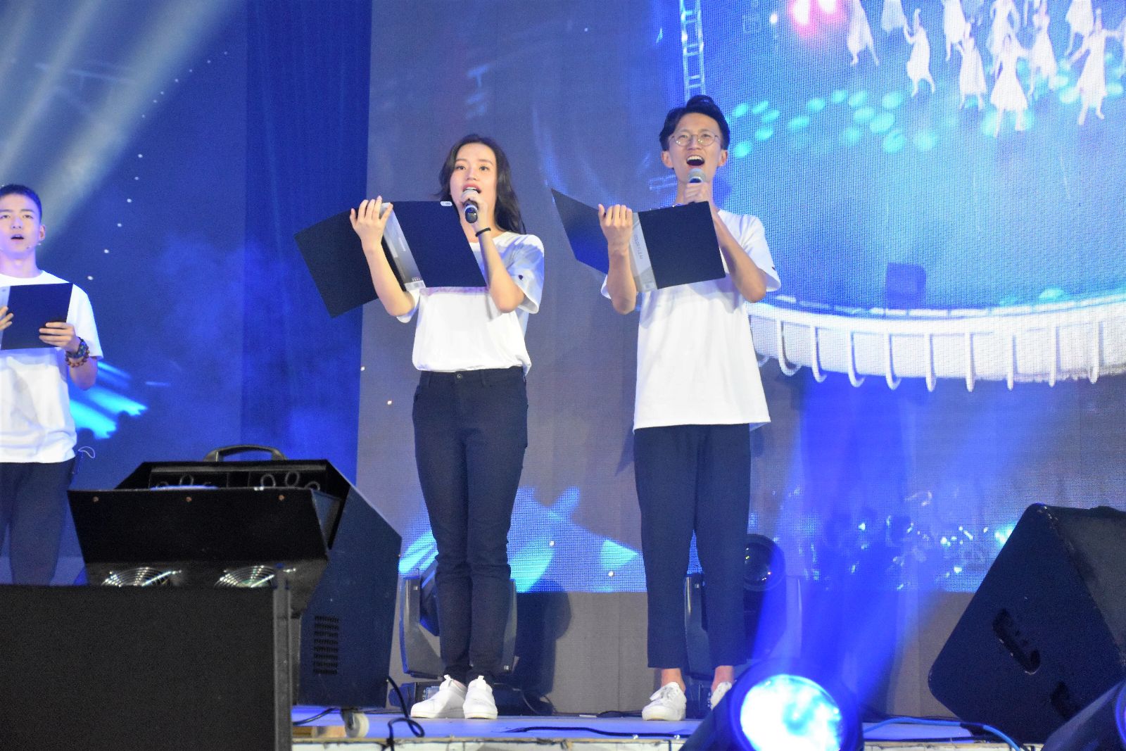 首先,由我院同学表演了《军训那些事》情景剧,他们用诙谐幽默的方式,生动再现了辛苦劳累却刻骨铭心的军训时光。接着,便是由备受瞩目的施天宇和游子逸同学带来的歌曲《陷阱》,歌声低沉哀伤,却动人心弦,观众席后方突然升起的一大片气球,伴着动人的歌声和屏幕上的烟花流火,在这个夜晚绽开万千霓虹。接下来的歌曲串烧《答案》更是将气氛推向高潮,观众们随着音乐的起伏爆发出阵阵尖叫和欢呼。