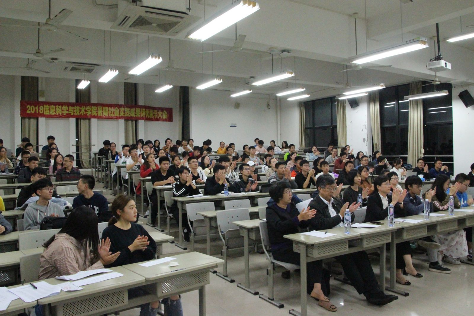 2018年11月2日晚19:00时,2018年bwin必赢暑期社会实践成果展示大会在海韵教学楼 204 举行。根据前期实践成果评分情况,最终12 支实践队伍脱颖而出,参加此次成果展示大会,为现场师生展示了丰富而精彩的社会实践成果,分享了社会实践经验。信息科学与技术学院党委副书记李承华老师、杨蔷,团委书记唐腾凤、团委副书记郑晖阁、黄艺明,辅导员蔡胜男、陈晨、廖炜以及学院学生会、本科生团总支主要学生干部参加此次大会。